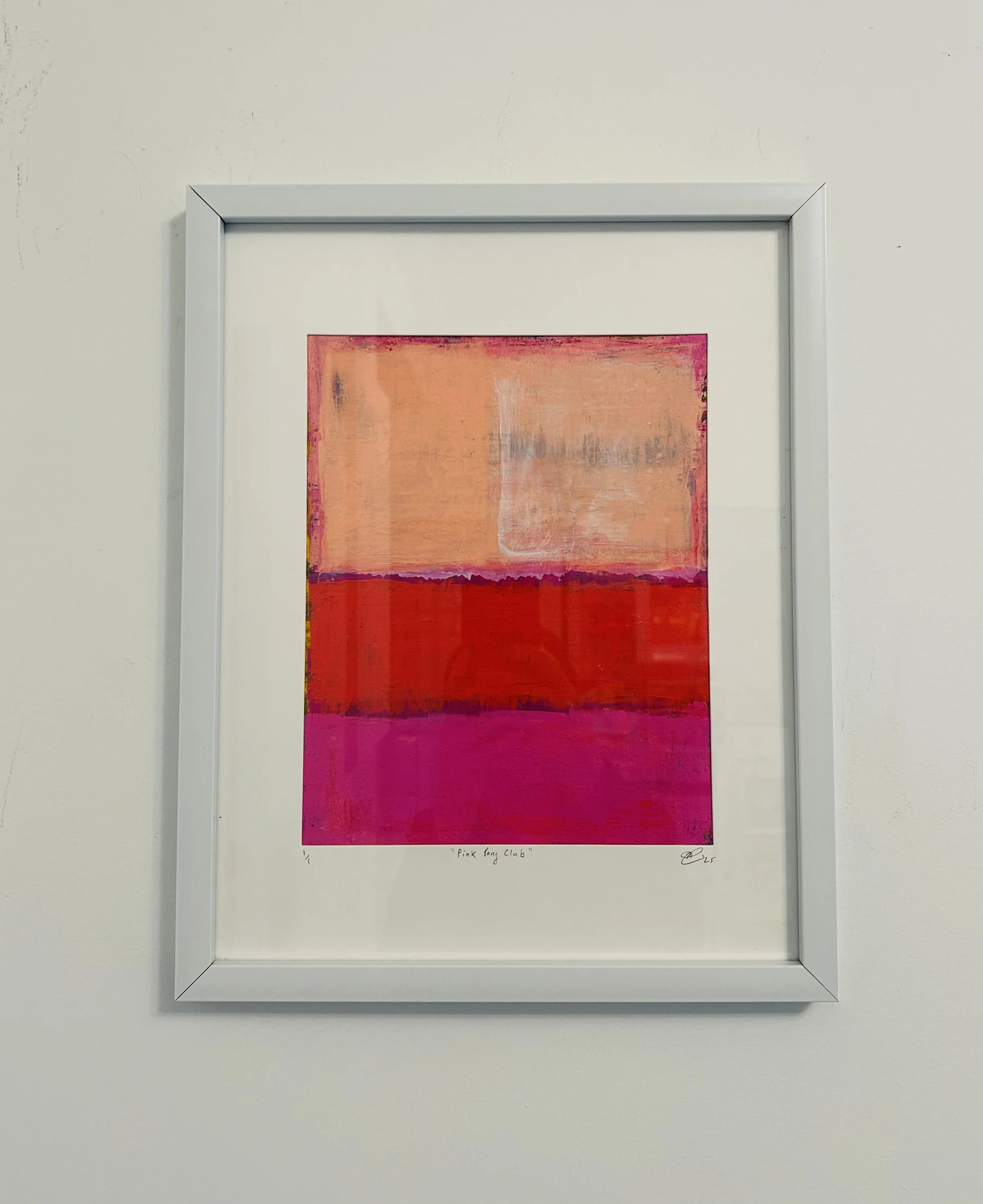 “Pink Pony Club” 20 x 25 cm acrylic on card framed. SOLD.